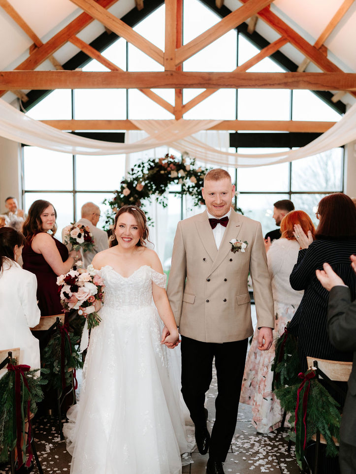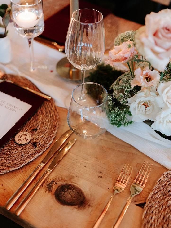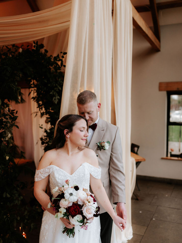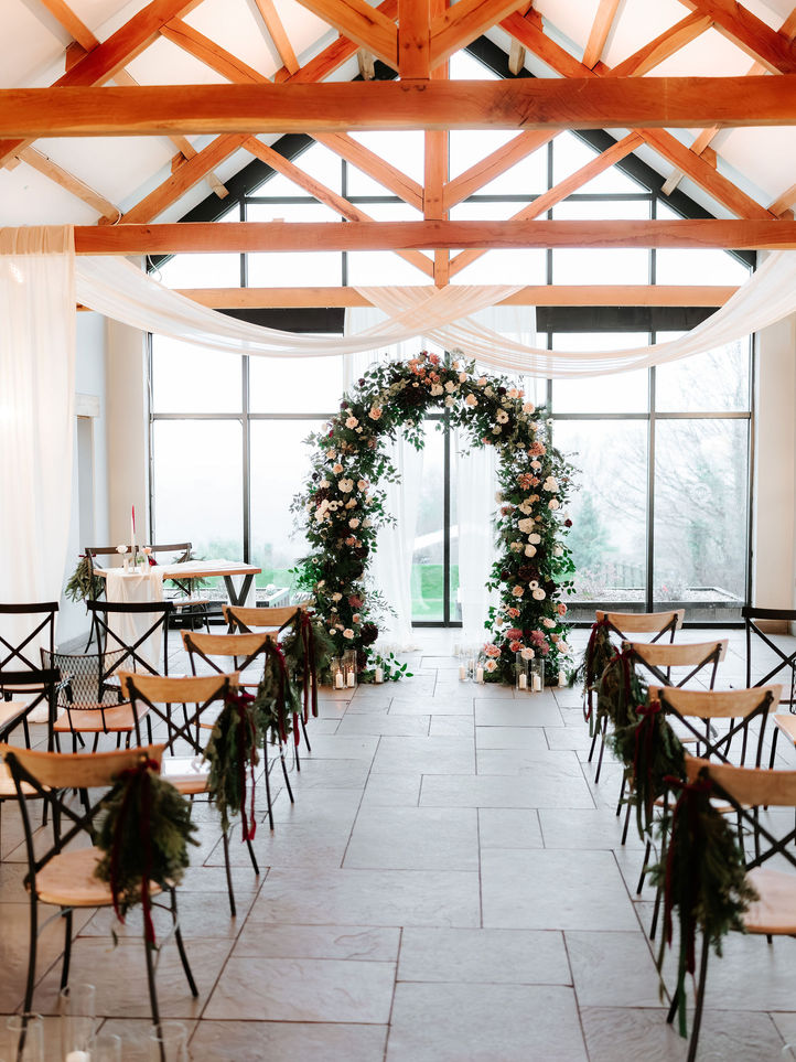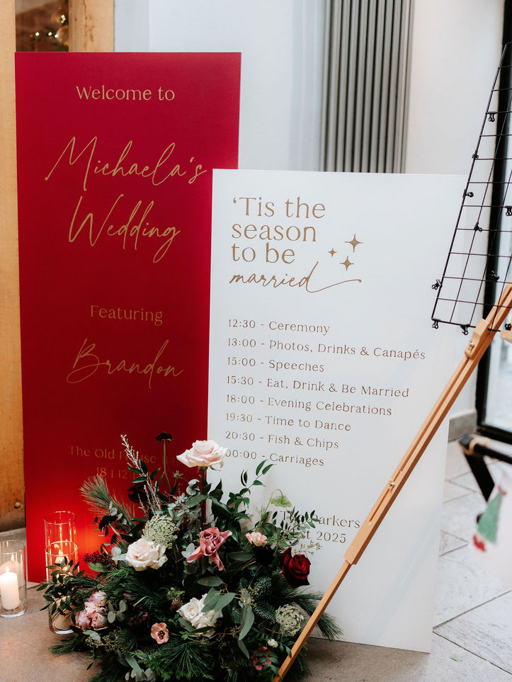 The most magical atmosphere, filled with cosy festive feels for this dreamy winter wedding at The Old House 1147. The soft, romantic draping for the ceremony added all the warmth to M&B's intimate ceremony, framing a beautiful wild and whimsical arch created by Tina at Forever Green Blooms. The tables were filled with delicate candlelight and floral arrangements in bud vases and bowls, while the stunning ceremony arch was beautifully repurposed to enhance the reception, and later framed the dessert table for the evening. Their signage and stationery by Trudi at Stories Styled Events was all thoughtfully designed to complement the styling and florals, tying the whole day together effortlessly.